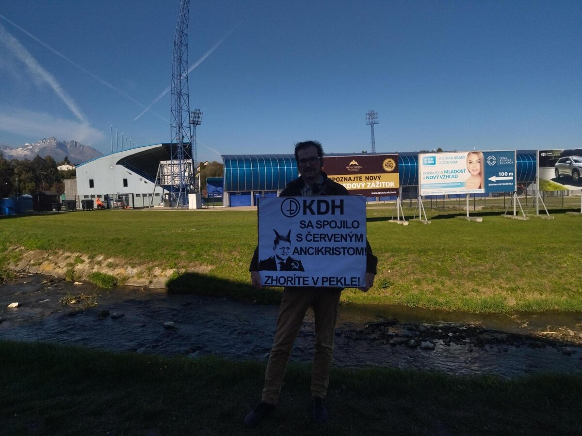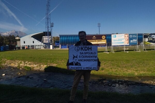 KDH sa spojilo s červeným Antikristom, je napísané na transparente s podobizňou premiéra pred hotelom AquaCity Poprad. Čítaj ďalej